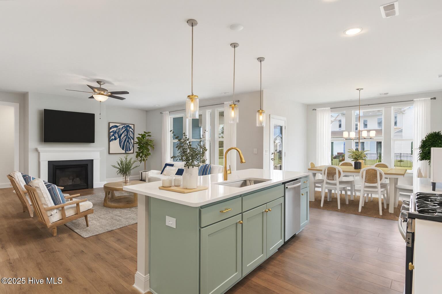 MOVE IN READY | Welcome home to the Sutton Coastal by builder Robuck Homes—where sophistication, comfort, and one-level convenience come together in the highly desirable WyndWater community of Hampstead. Step through the entryway and into the heart of the home, where an open-concept layout seamlessly connects the kitchen, dining area, and living room. The gourmet kitchen is a true showpiece: a grand island painted in a soft sage-brush color anchors the space, complemented by a farmhouse sink, elegant gold accents, and soft-close cabinetry. A gas cooktop, wall oven/microwave combo, and stainless steel appliances make cooking a joy, while quartz countertops provide plenty of workspace. The kitchen flows effortlessly into the adjoining dining area and living room, featuring a cozy gas fireplace—perfect for entertaining or everyday living. Hard surface flooring runs throughout the downstairs, including all bedrooms, creating a polished, cohesive look that's easy to maintain. Tucked away for privacy, the primary suite offers a beautifully designed bathroom with dual vanities, an oversized walk-in tiled shower, and a generous walk-in closet. Three additional bedrooms and baths provide space for family and guests, while an upstairs loft adds versatile space for a home office, playroom, or relaxation area. From the living room, step outside through the grand sliding glass doors to your screened in covered rear porch and backyard, ideal for morning coffee, evening gatherings, or simply enjoying the coastal breeze. Beyond your front door, WyndWater offers a lifestyle all its own—zero-entry community pool, pocket parks, and open green spaces—all just minutes from Topsail beaches and Wilmington. Your dream one level living home awaits—schedule your tour of the Sutton Coastal today.