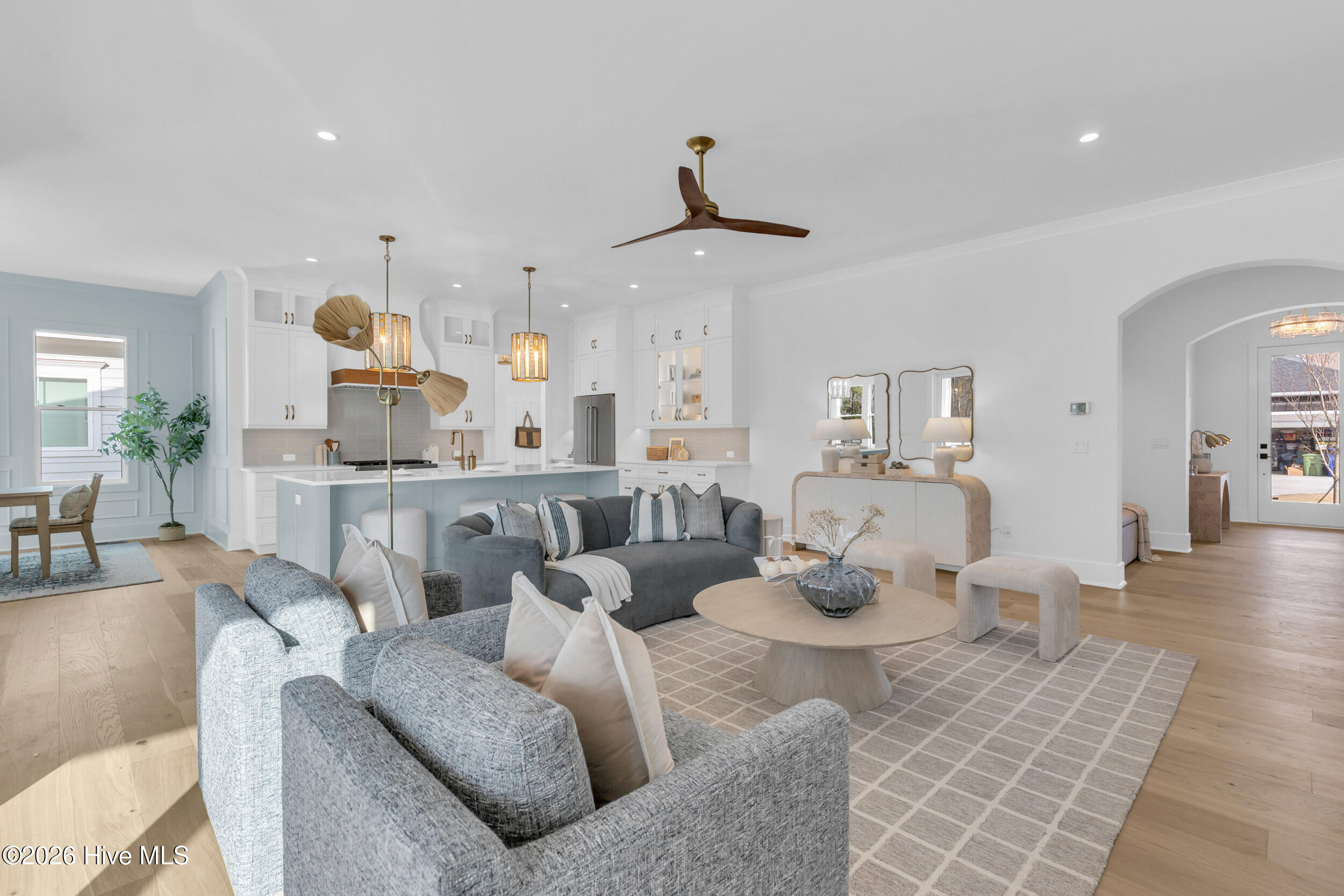 Welcome to this stunning 4-bedroom, 3.5-bath home in East and Mason that blends timeless European-inspired architecture with a spacious, thoughtfully designed interior perfect for modern living. Set on a beautifully landscaped lot, this custom-built residence offers over 3,400 square feet of exceptional comfort, style, and functionality. From the moment you arrive, you'll be captivated by the home's unique curb appeal—featuring a graceful swooping gable, painted brick exterior, black metal roof accents, and charming arched entryway. The open-concept main floor is anchored by a gourmet kitchen with a large center island, walk-in pantry, and seamless flow into the dining area and expansive family room—perfect for entertaining. Just off the kitchen, relax year-round on your porch overlooking the private backyard. The main-level owner's suite is a luxurious retreat with dual walk-in closets, and a spa-like bathroom featuring a soaking tub, walk-in shower, and separate vanities. A dedicated laundry room, mudroom with drop zone, and powder bath round out the main level for ultimate convenience. Upstairs, you'll find three additional bedroom suites—each with generous closet space—two full baths, and a spacious loft ideal for a playroom, media space, or home office. Come out today to tour this must see home from Vahue Custom Homes!!